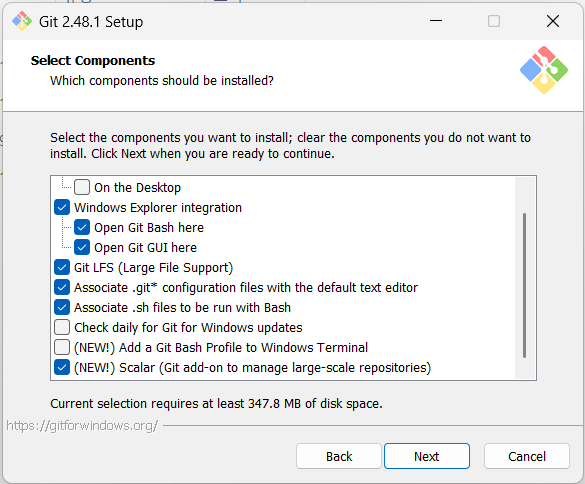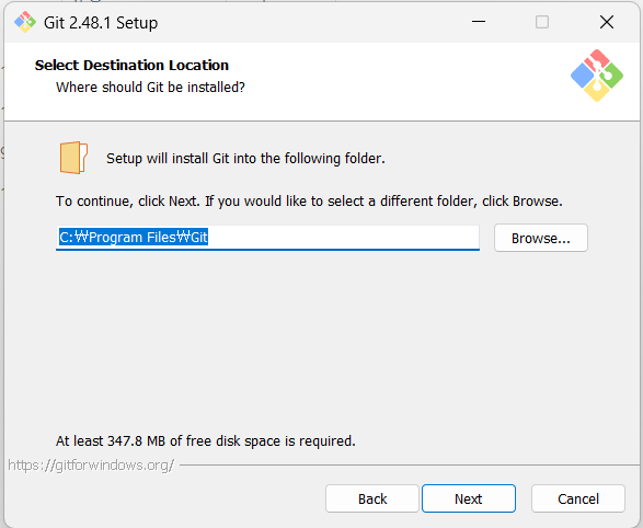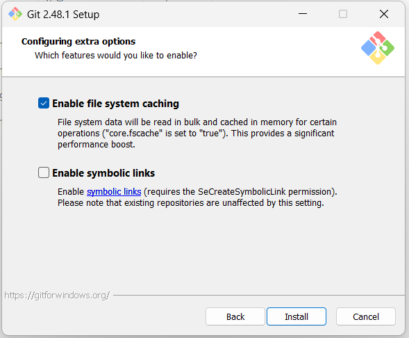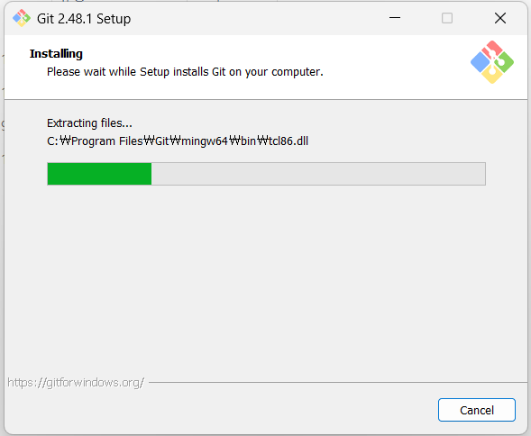 최종적으로 Install 버튼을 누르면 git이 설치된다.