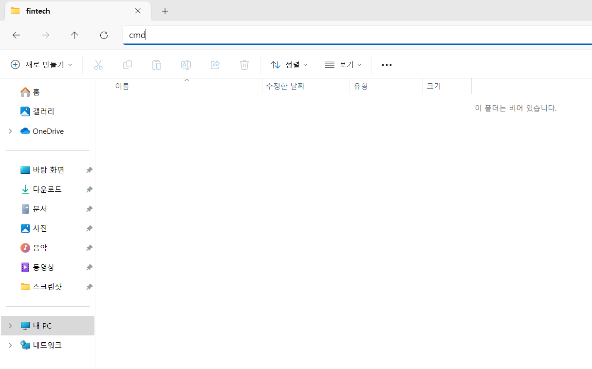 아래 예제에서는 fintech 라는 폴더를 생성했다.