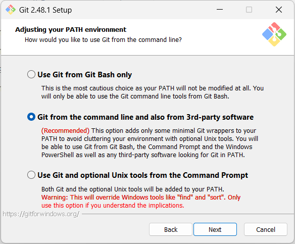 Git from the command line and also from 3rd-party software 기본값 사용