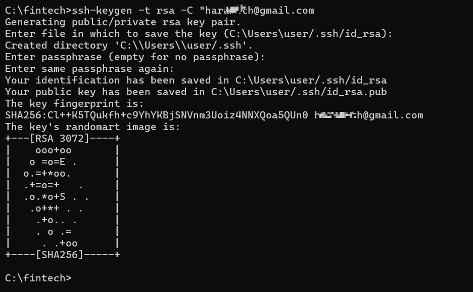 ssh-keygen -t rsa -C "이메일주소" 를 입력하고 enter를 치면 뭔가 입력하라고 나오는데 그냥 enter를 치면 넘어가진다.
