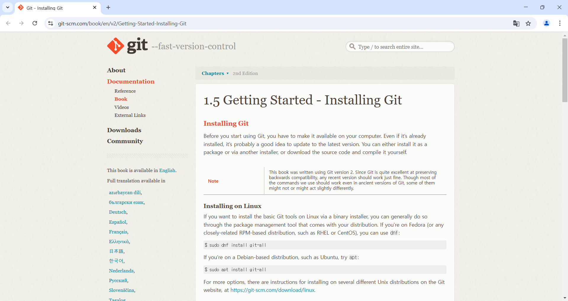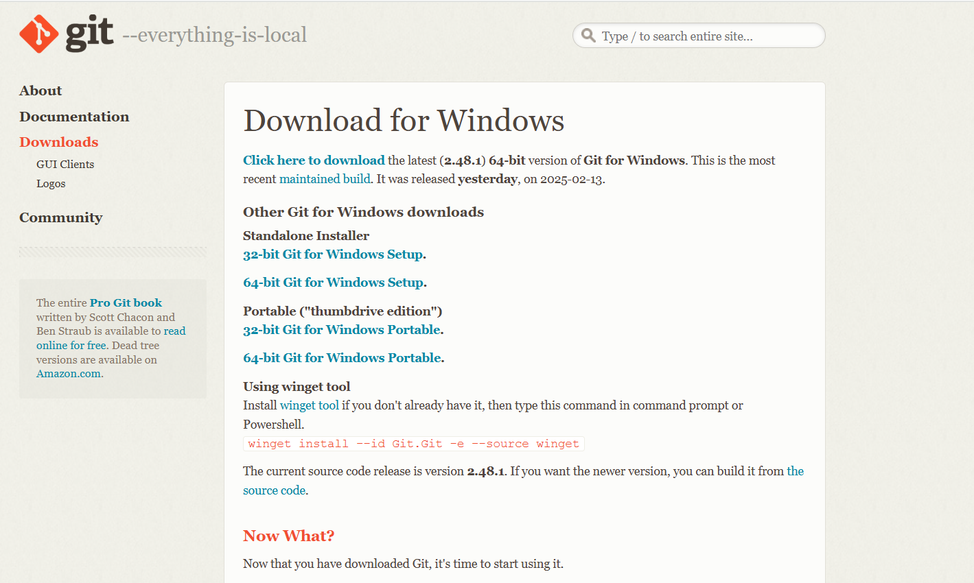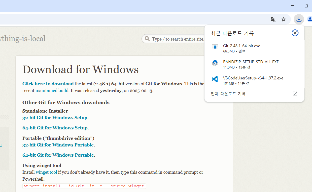 그러면 git 설치 페이지로 바로 이동한다.