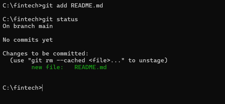 new file: 에 README.md 가 있다면 정상적으로 staging 된 것이다.