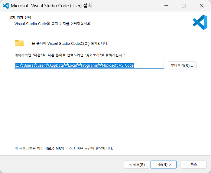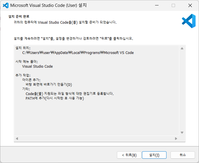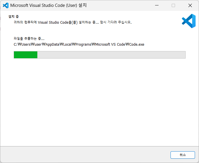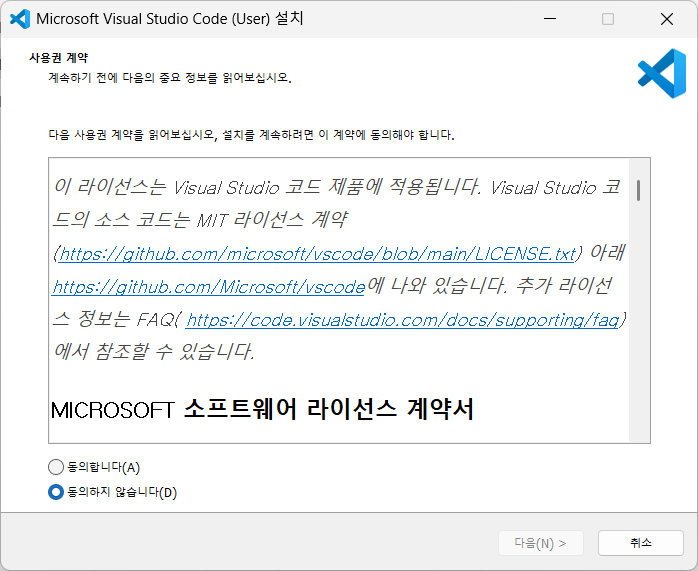 다운로드 폴더로 이동해서 설치파일을 실행하고 vscode를 설치한다.