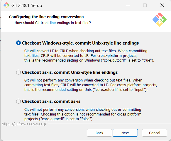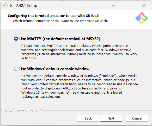 Use Visual Studio Code as Git's default editor 선택 후 Next 클릭