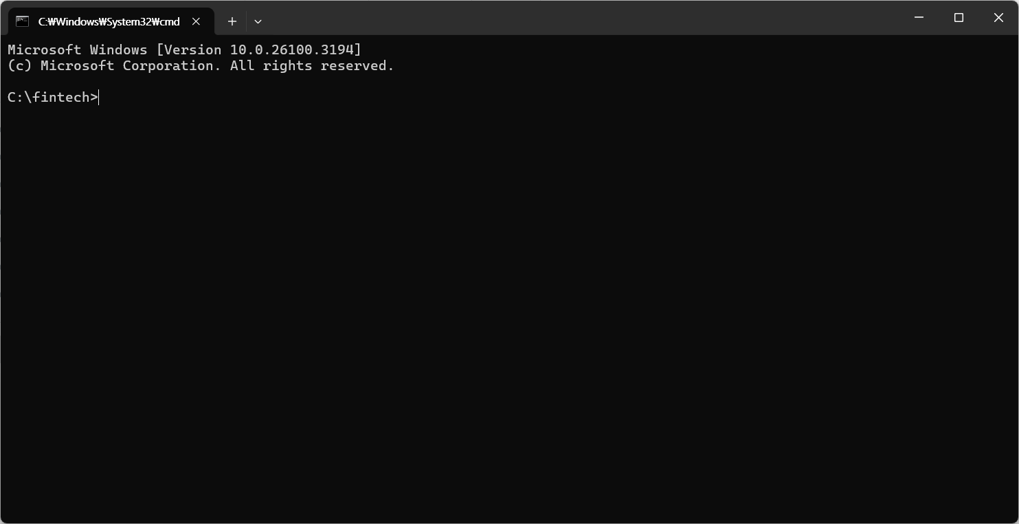 경로 위치가 C:\fintech>인 것을 확인하자.