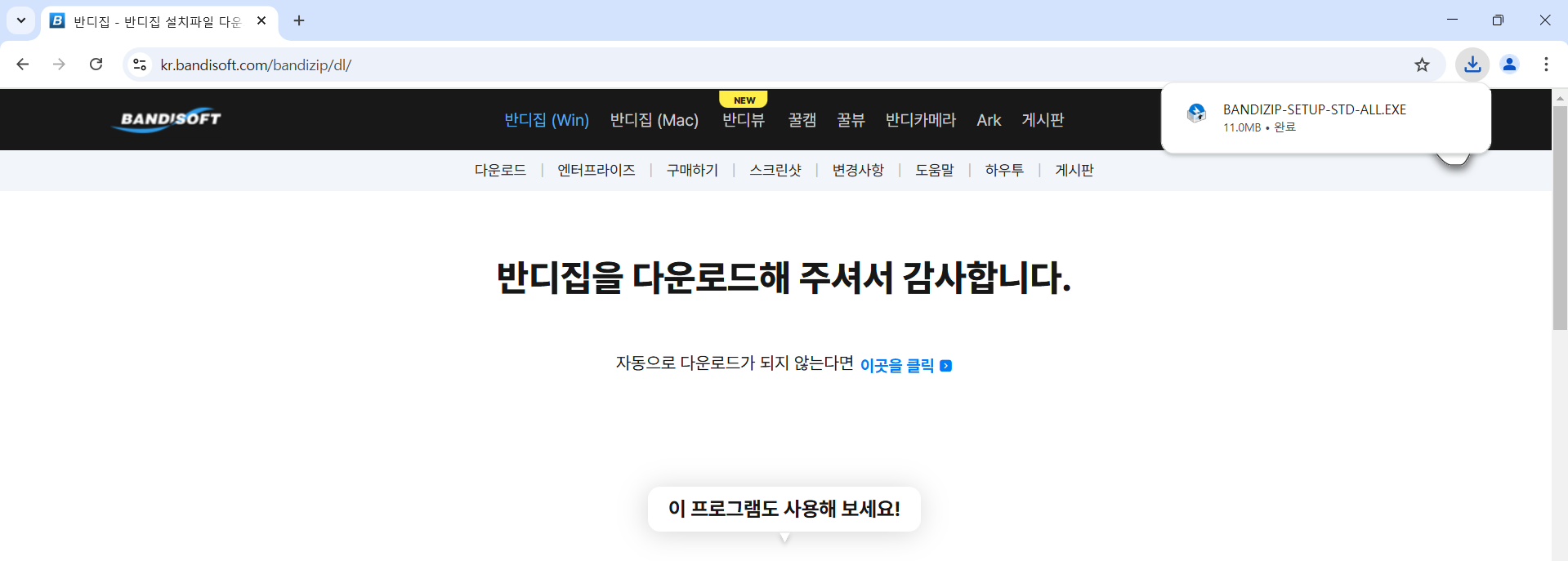 https://kr.bandisoft.com/bandizip/dl/