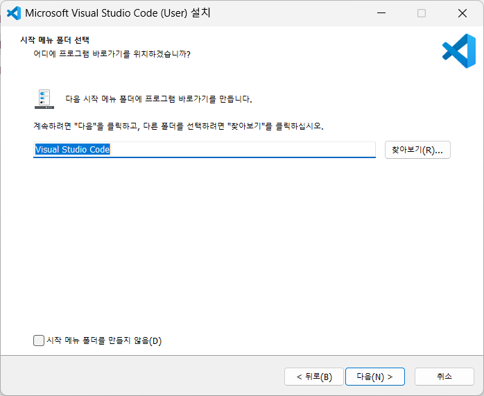 시작 메뉴 폴더도 기본으로 놔두고 다음 클릭