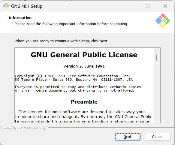 다운로드가 완료되면 git 설치 파일을 클릭해서 설치를 시작한다.