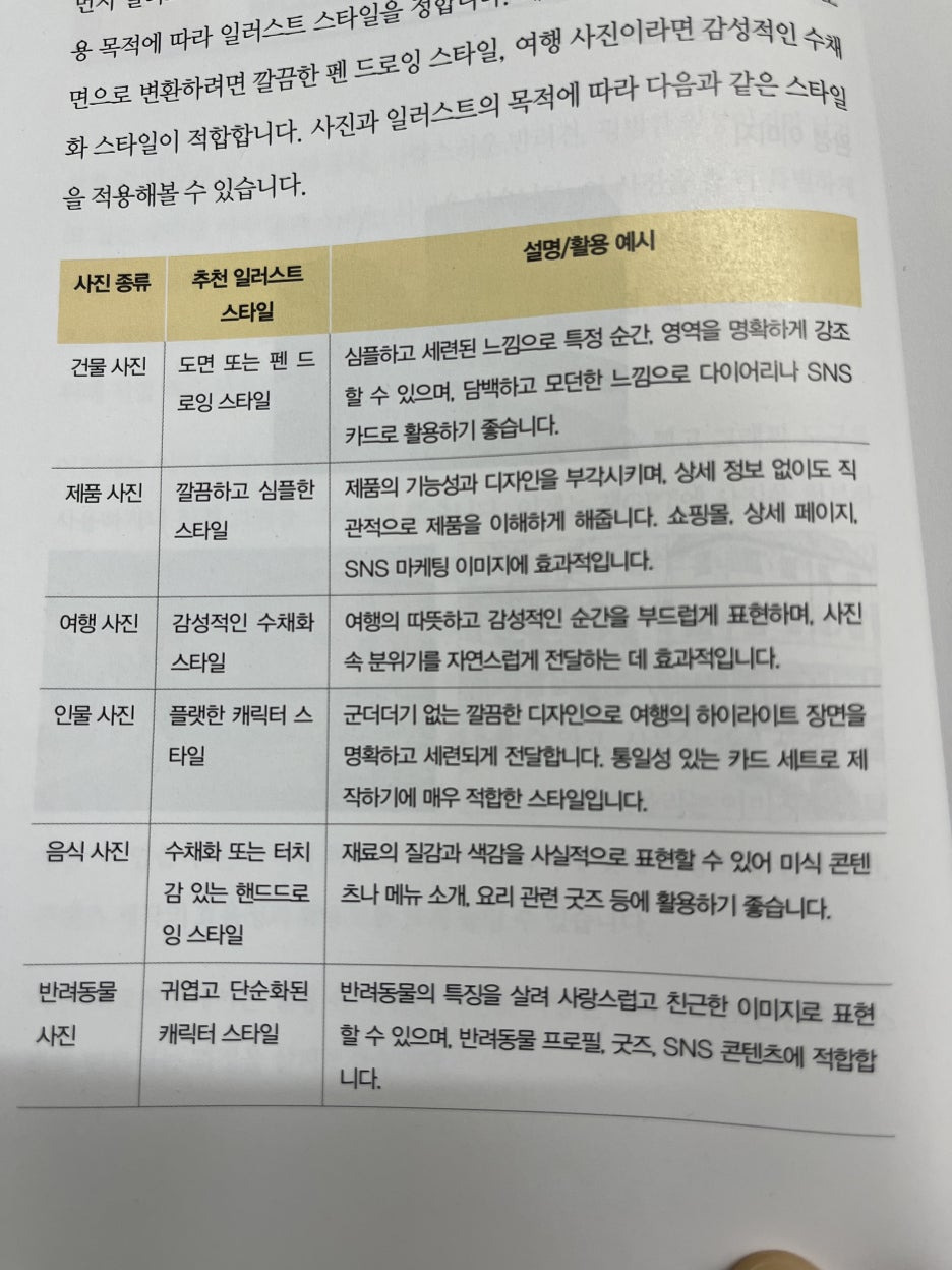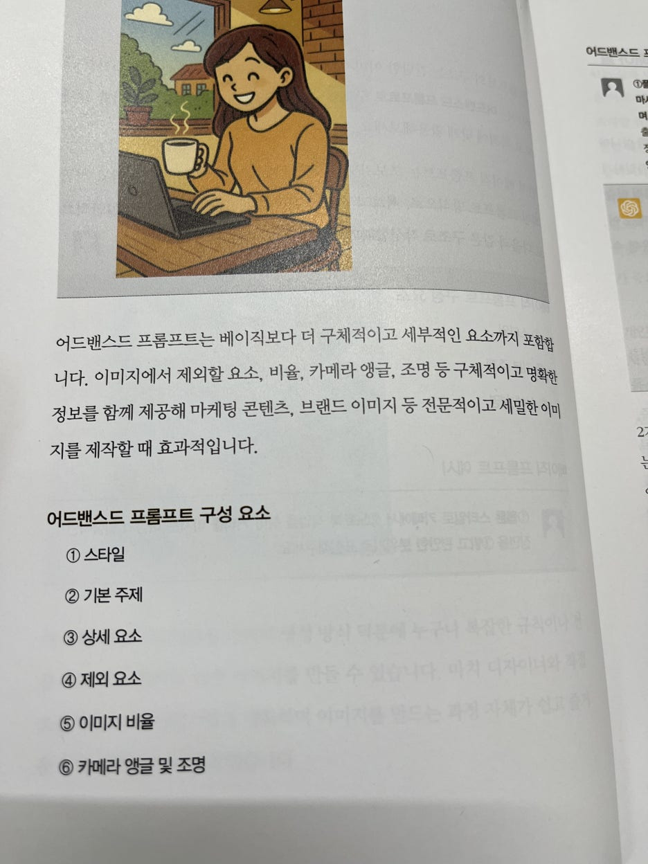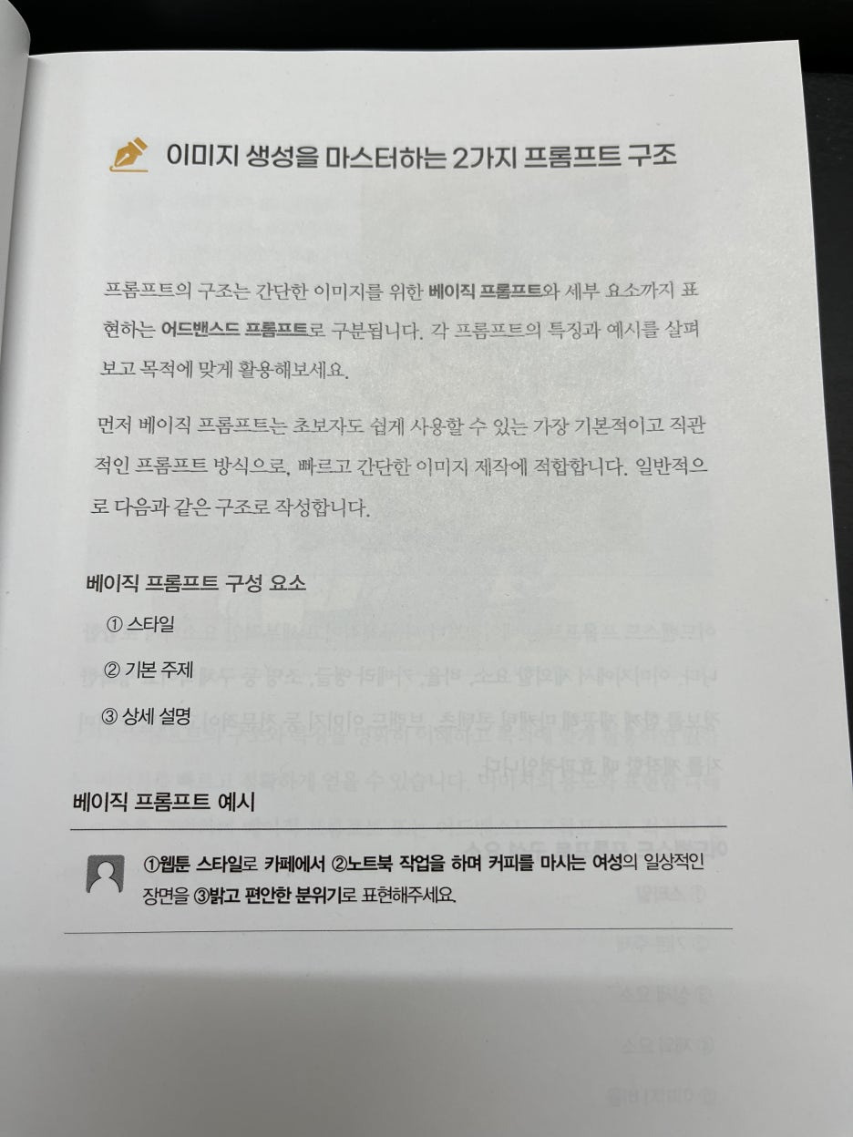 일러스트 부분 뿐 아니라 다른 파트에서도 상황에 맞는 스타일 추천이나 원하는 결과를 얻기 위한 프롬프팅 방법을 자세히 알려주고 있어서 아주 쉽게 따라해보고 응용해 볼 수 있었습니다.