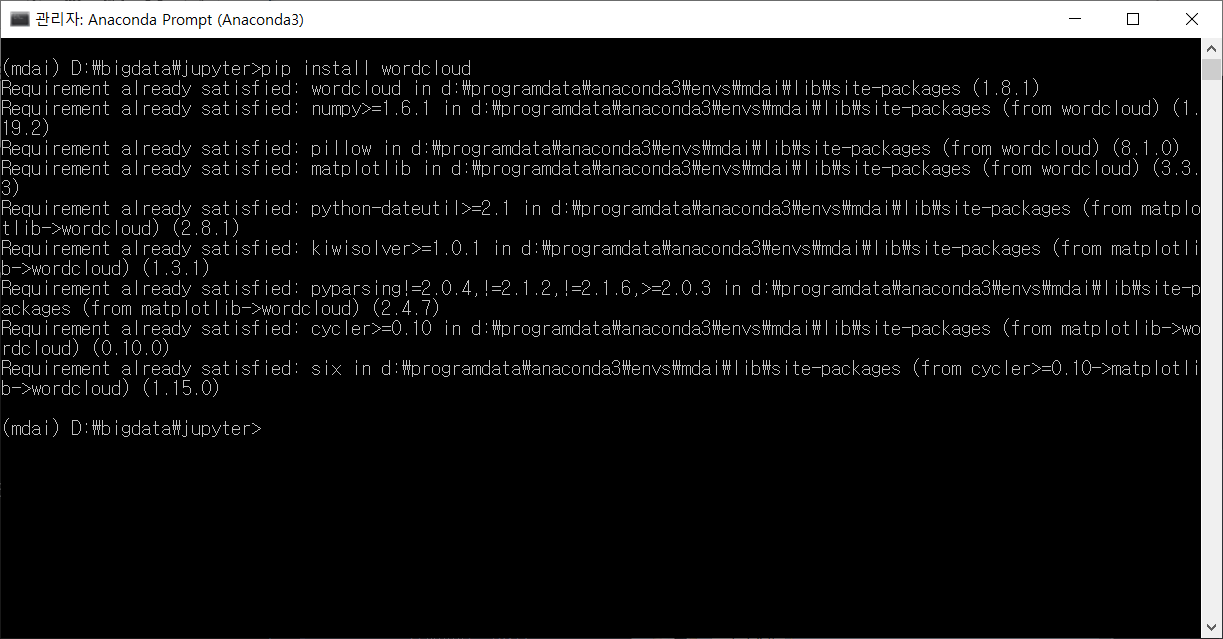 4. WordCloud 를 위한 패키지 설치