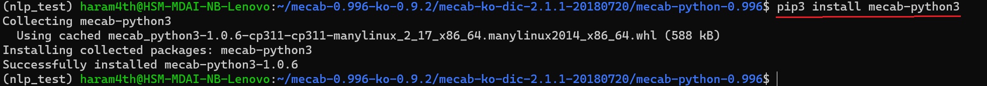 (5) pip3 install mecab-python3 로 mecab-python3 재설치