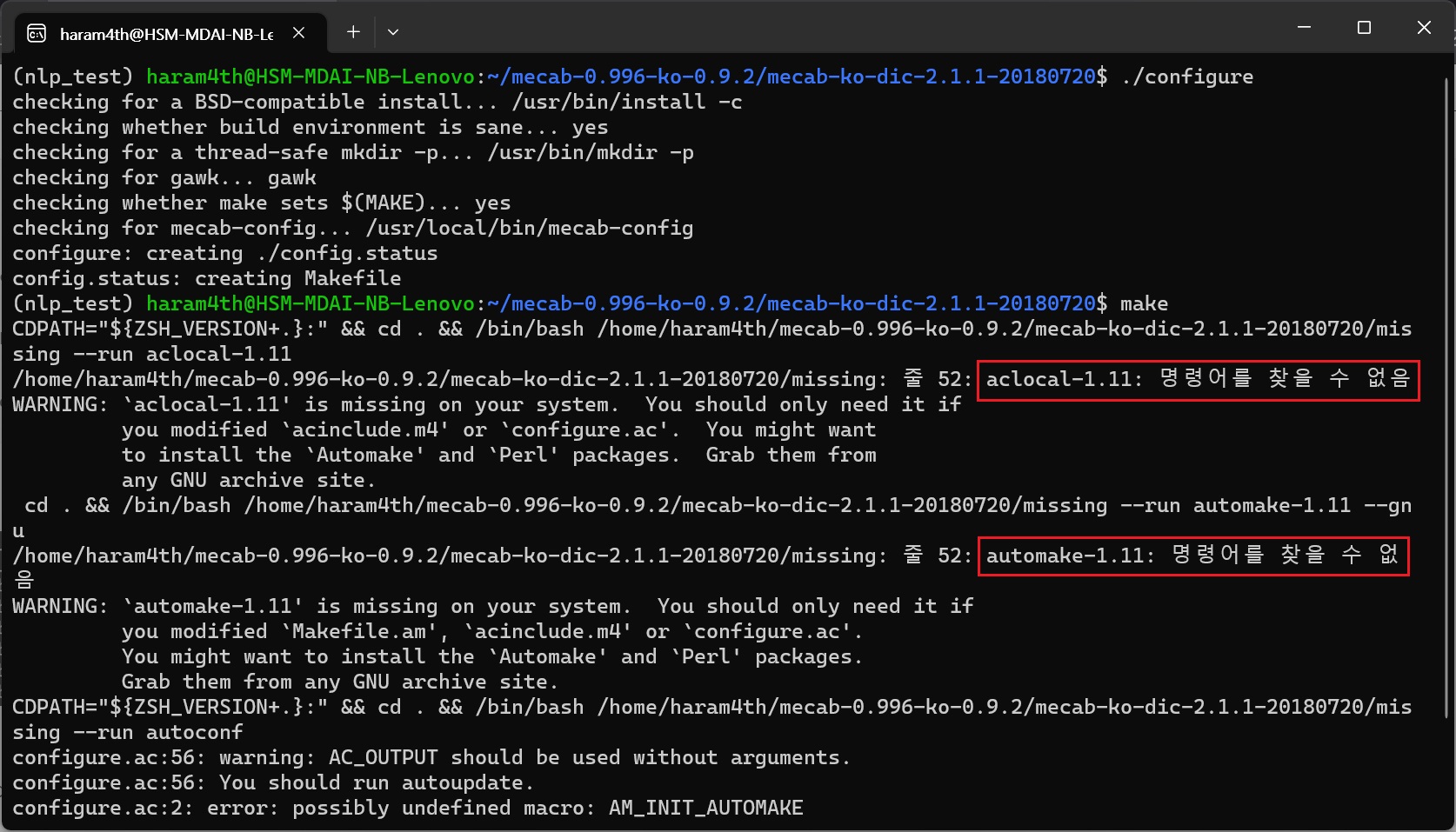 Invalid version: '0.996/ko-0.9.2' - Mecab 설치 오류 해결 - Ubuntu22.04, Konlpy, mecab