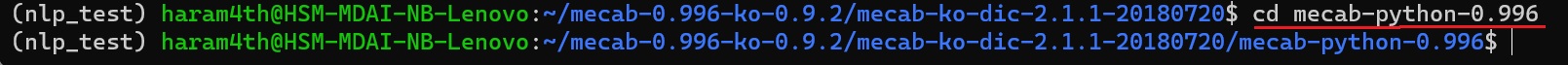 7) mecab-python 설치를 위해 아래의 명령어를 차례대로 실행