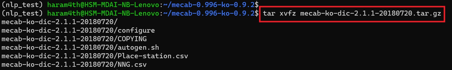 tar xvfz mecab-0.996-ko-0.9.2.tar.gz