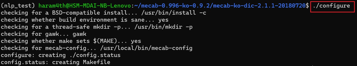 (2) cd mecab-ko-dic-2.1.1-20180720: 새로 생긴 디렉토리로 들어감