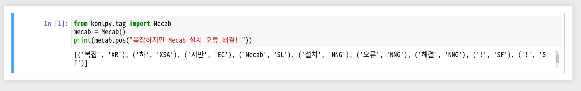 print(mecab.pos("Mecab 설치 오류 해결!!"))'Python' 카테고리의 다른 글