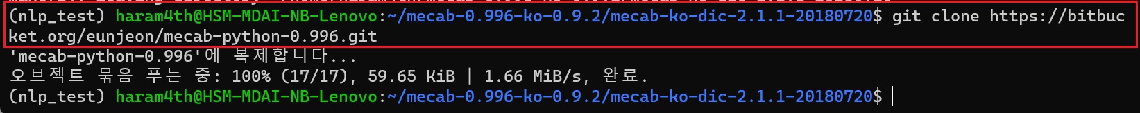 (1) git clone https://bitbucket.org/eunjeon/mecab-python-0.996.git