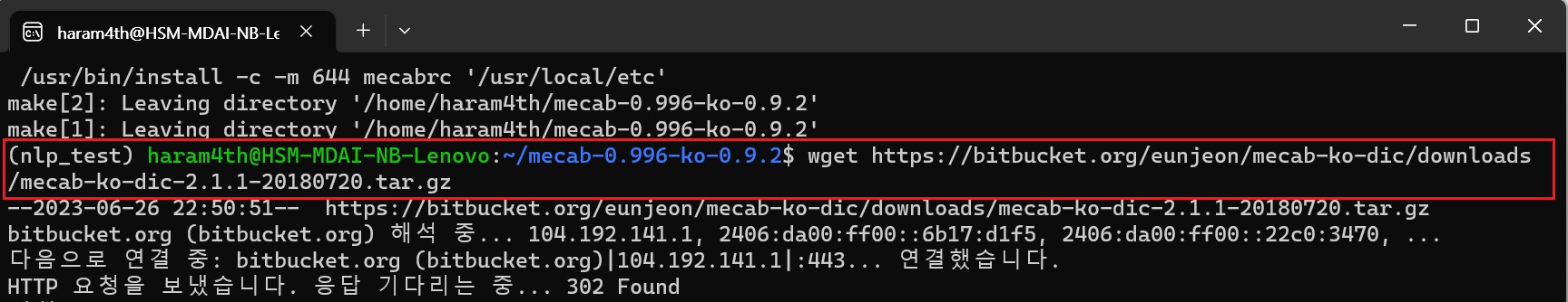 wget https://bitbucket.org/eunjeon/mecab-ko/downloads/mecab-0.996-ko-0.9.2.tar.gz