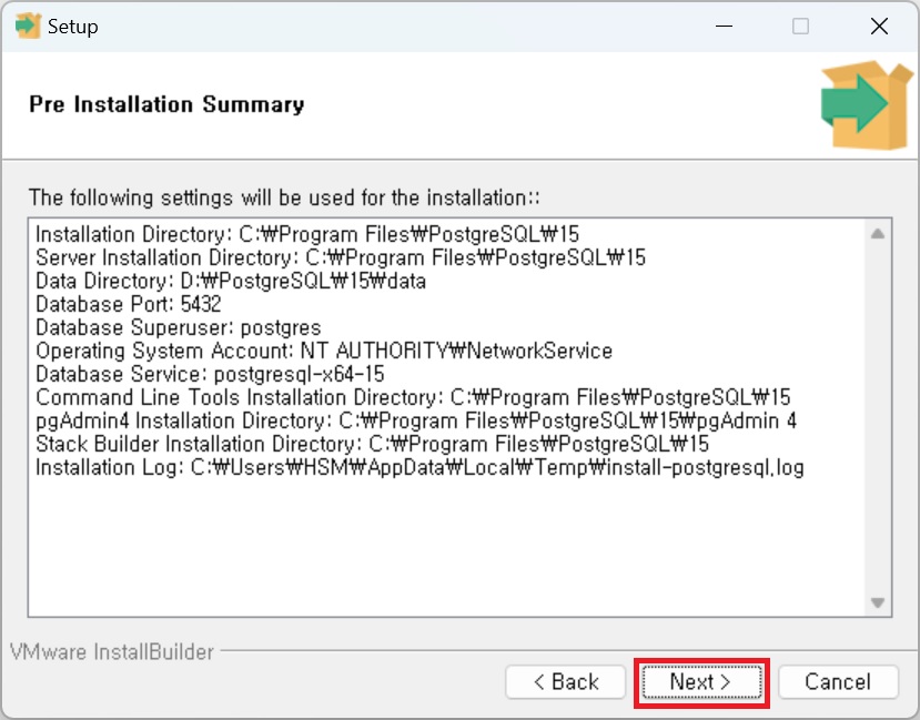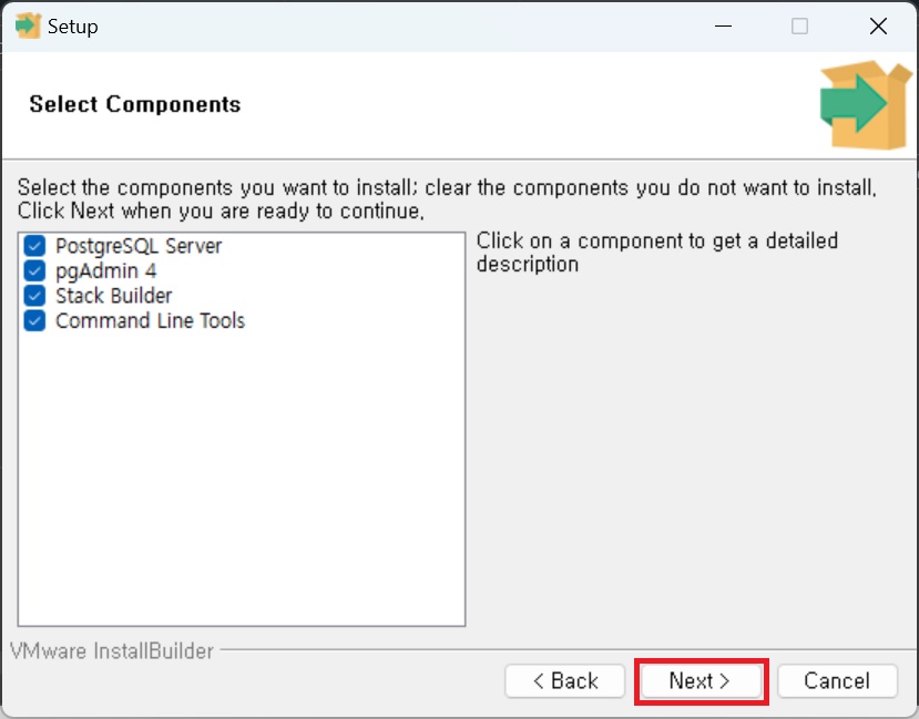 PostgreSQL 설치경로는 기본으로 유지하고 Next