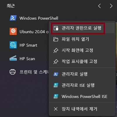 2. PowserShell 관리자 모드로 실행