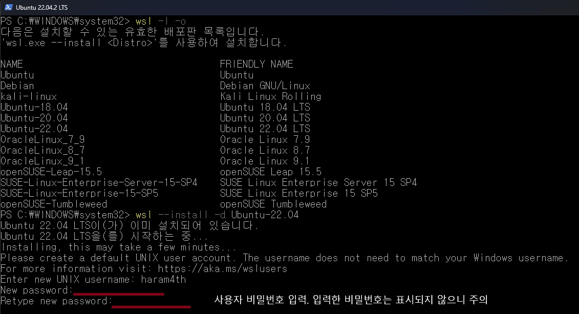 wsl --install -d Ubuntu-22.04 로 설치