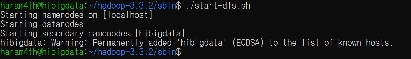 2) ./start-dfs.sh 를 실행해 hadoop이 작동하는지 확인