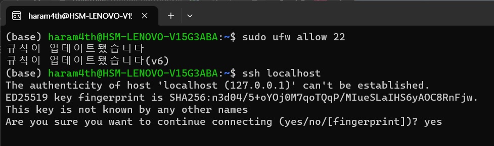 그 후 다시 ssh localhost 입력
