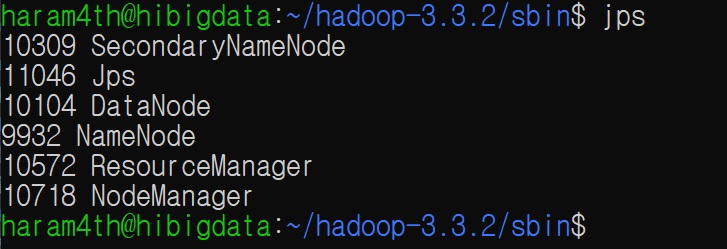 3) jps로 hadoop 프로세스가 떠있는지 확인
