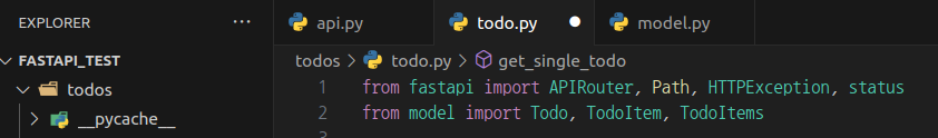 1) todo.py에 HTTPException, status를 임포트 한다.