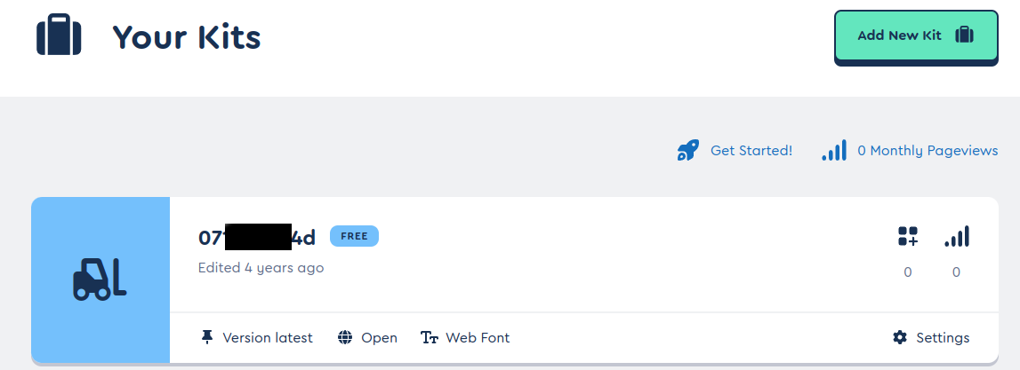 1) fontawsome에 로그인을 하고 나면 Your Kits 가 나온다. Free 글자가 있는 곳 왼쪽의 코드를 클릭하자.