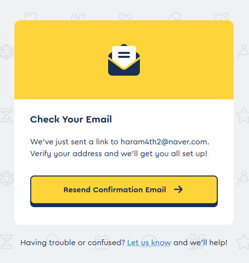 그러면 아래와 같은 화면이 나오면서 위에서 적은 이메일을 체크해 보라고 나온다.