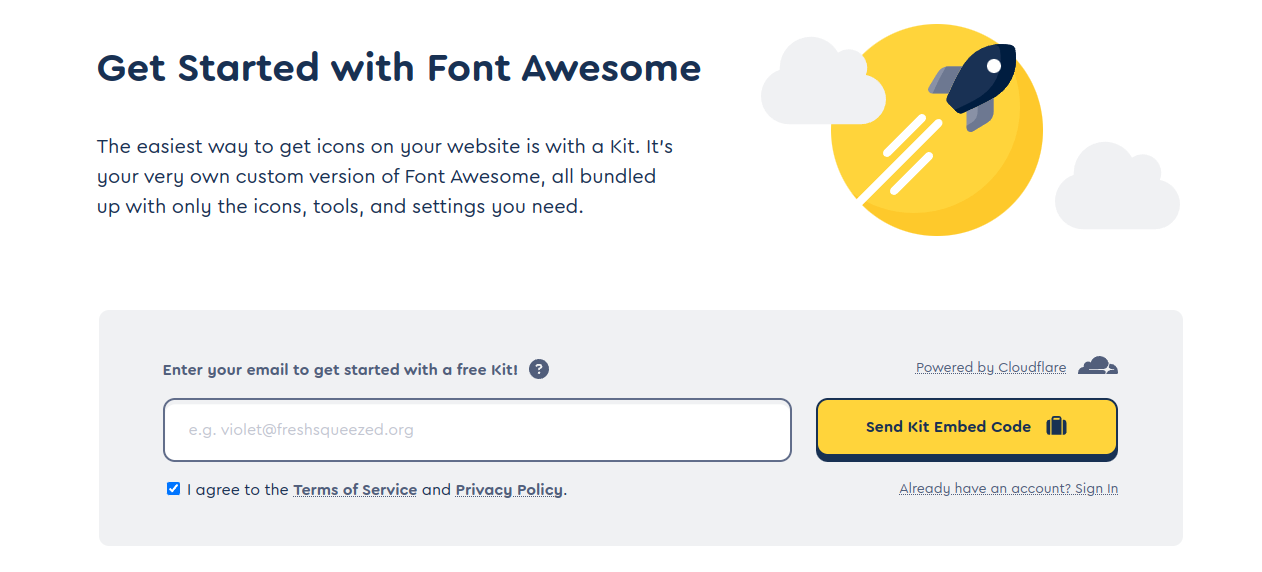 3) email 주소를 입력하고 agree 부분에 체크한 후 오른쪽의 send kit embed code 를 누른다.
