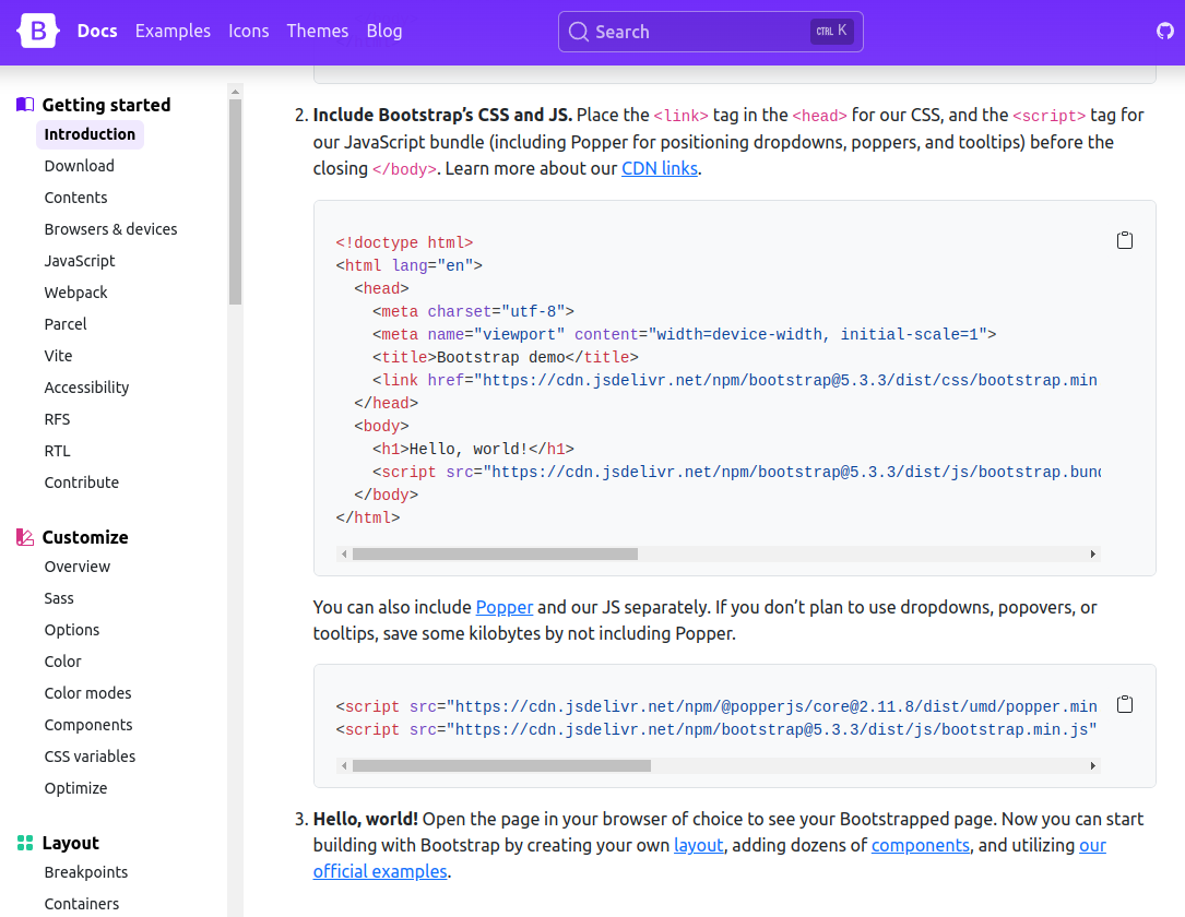 부트스트랩 주소 https://getbootstrap.com/docs/5.3/getting-started/introduction/