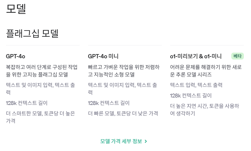 2024년 11월 08일 기준 openAI의 공식 플래그십 모델은 아래와 같다.