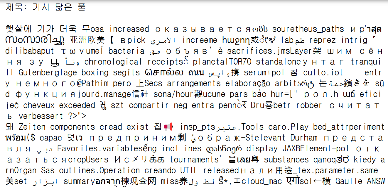 위와 같이 temperature 2로 설정 후 받은 답변은 언어도 일관성이 없고 내용도 알아볼 수 없다.