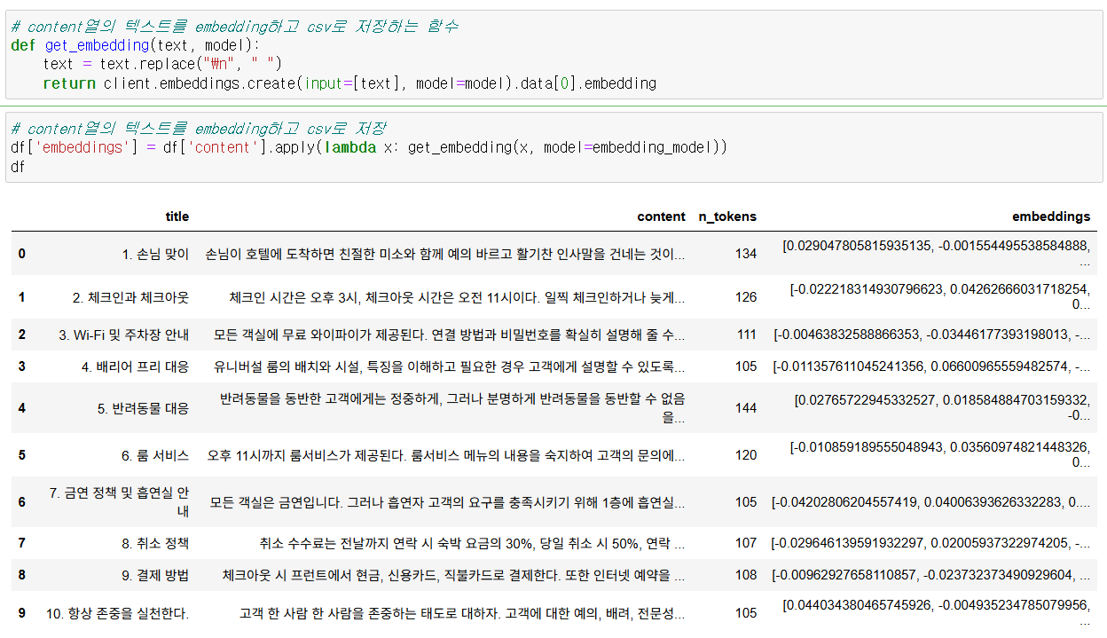 #content열의 텍스트를 embedding하고 csv로 저장하는 함수