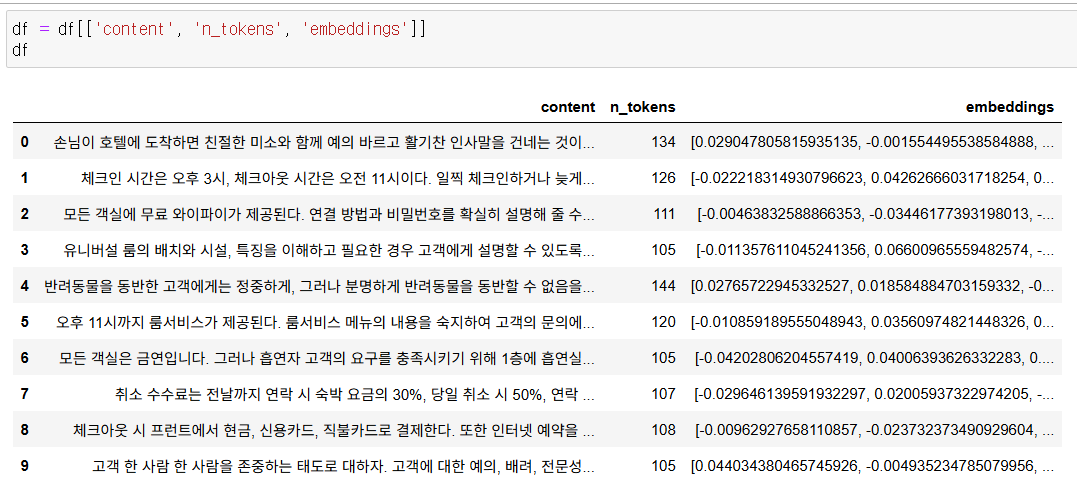 # content열의 텍스트를 embedding하고 csv로 저장