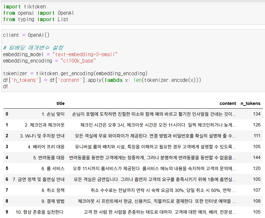 (4) content, n_tokens, embeddings 컬럼만 추려서 csv로 저장